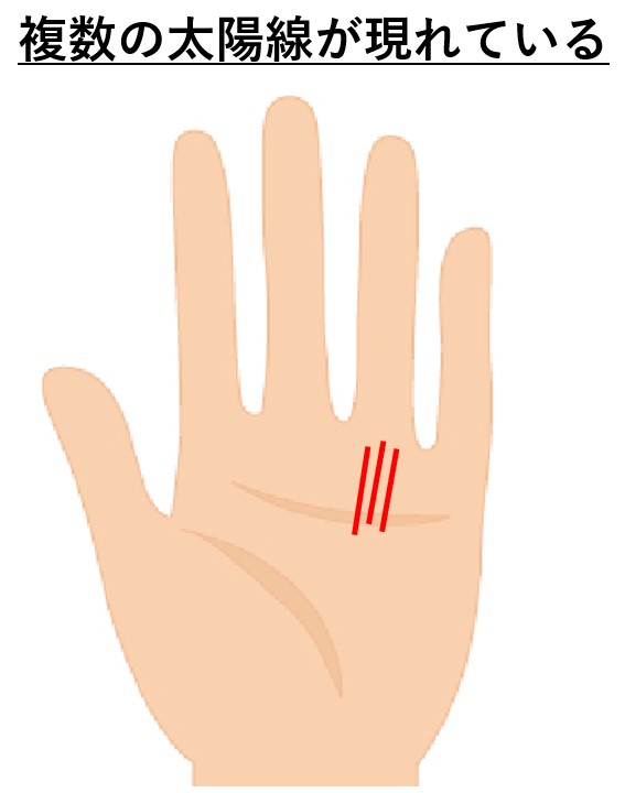 複数の太陽線は、多方面での才能や能力を示すこともあると言われており、様々な分野で成功を収める可能性があることを意味し、結果として多様な収入源を持つ可能性が高まります。