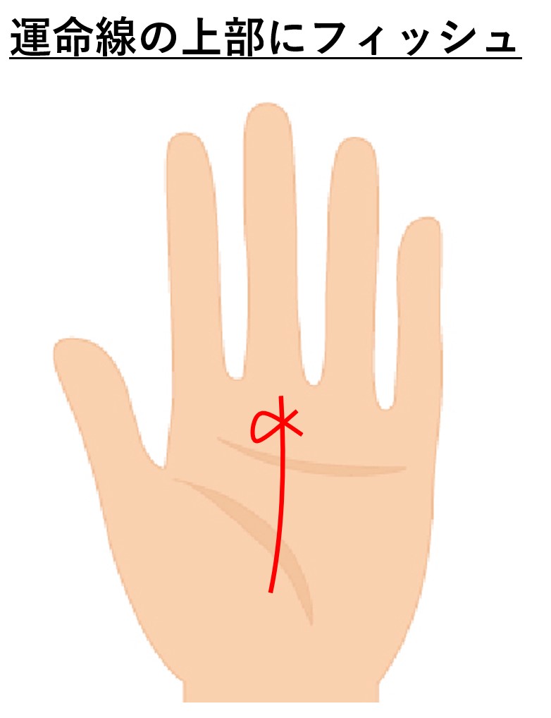 見られる手相とされていますね。運命線の上部が晩年を指すため、そのあたりで幸運のフィッシュが