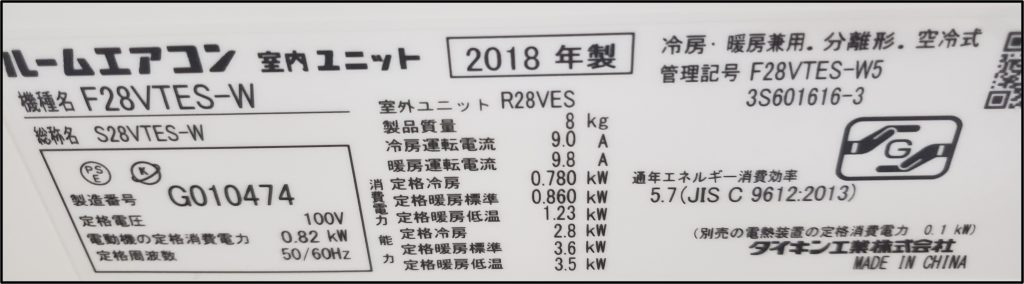 暖房標準0.86kW:室外の空気の温度が7℃、室内の空気の温度が20℃であるときの消費電力