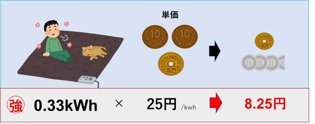 1kWhで25円ですので、今回は25円を0.33倍して、8.25円にとなります。