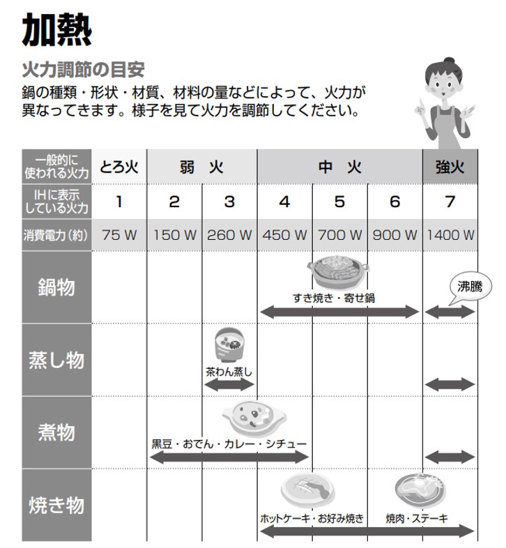ちなみにこちらの製品は、7段階で火力を調整できますが、1400Wは強火に当たります。
