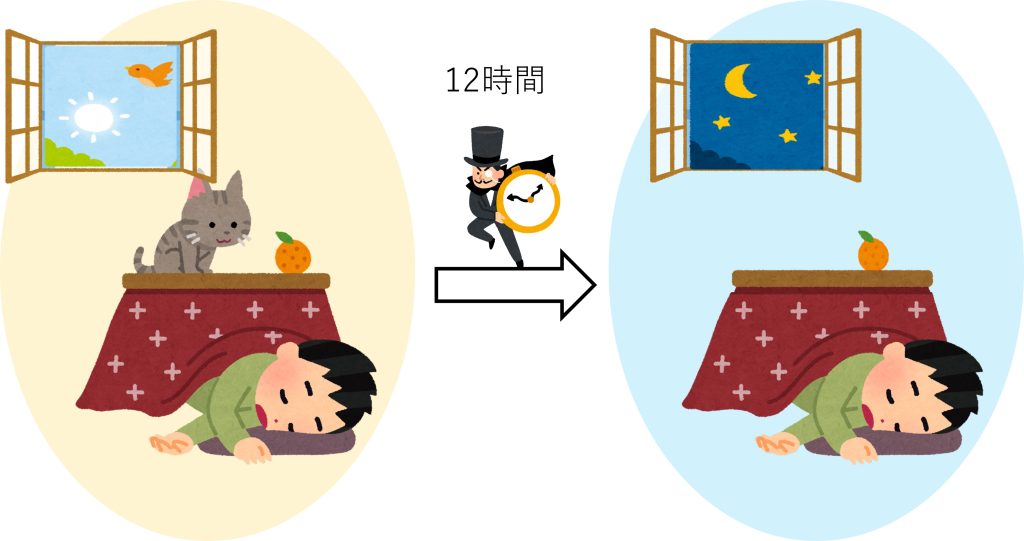 1時間当たりのこたつの電気代は10円ということがわかりましたが、日中ずっとこたつをつけっぱなしにしていた場合で考えてみます。