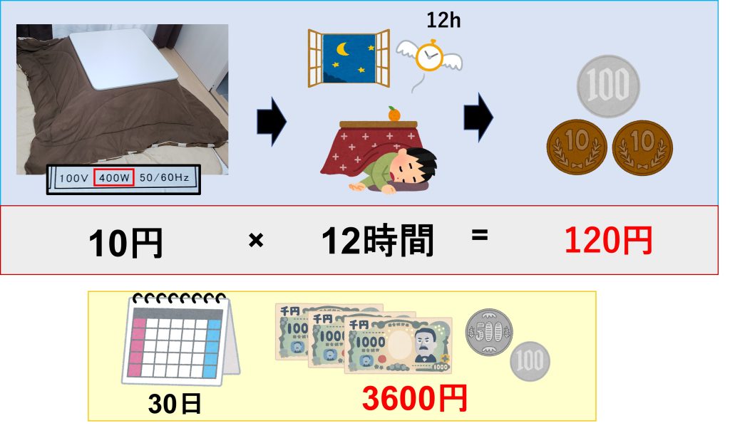 こたつに印字されている消費電力を元に電気代を簡単に算出する方法を主に以下の方に向けて解説したいと思います。