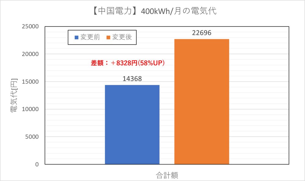トータルの電気代としては、差額が約5200円程で58%の値上りということになります。